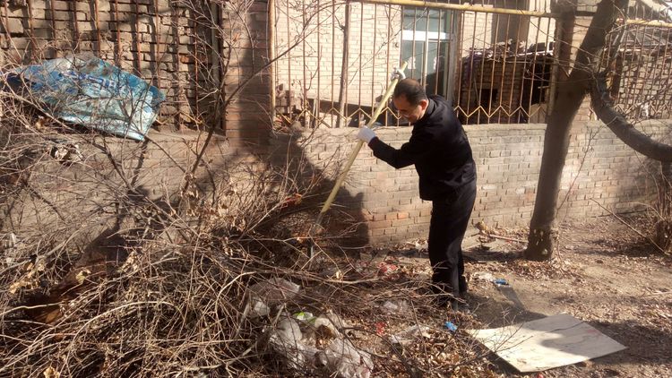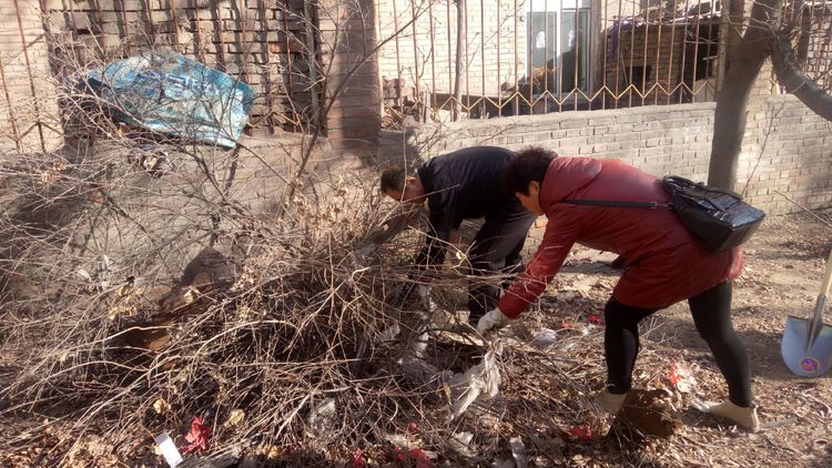 看安馨養(yǎng)老服務(wù)中心后院里參加清掃衛(wèi)生的青年團(tuán)員志愿們拿著笤帚、鐵鍬、鋸等用具。開始了緊張的忙碌,鋸枯樹枝的,清掃院落的,清倒垃圾的,大家分工合作,經(jīng)過了一上午的清掃整理,整個(gè)院落更加的干凈整潔了。