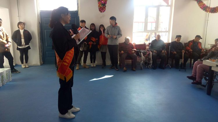 聽活動(dòng)室里不時(shí)傳來老人們的歡笑聲,原來是另一路青年團(tuán)員志愿們在表演精心準(zhǔn)備的節(jié)目。這方唱罷,那邊已經(jīng)迫不及待的上場了,節(jié)目豐富而有趣。
