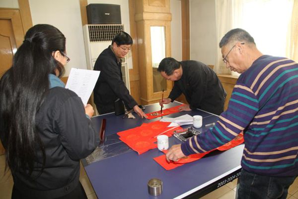 火紅的對聯(lián),淡淡的墨香,一副副工整喜氣的春聯(lián)擺滿了大廳。春聯(lián)內容既有喜迎豬年辭舊迎新的美好愿景,也有歌頌黨恩、大展宏圖的勵志詞句,一幅幅精彩的書法作品,一句句吉祥如意的春聯(lián),不僅讓職工目睹了書法家的風采,更為即將來臨的春節(jié)增添了濃濃的喜慶氛圍。機關干部職工紛紛前來領取現場寫好的春聯(lián)、更接受“私人訂制”,現場喜氣洋洋、歡聲笑語,不僅送出了新春的祝福更送出了濃厚的年味兒和文化味。