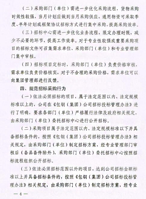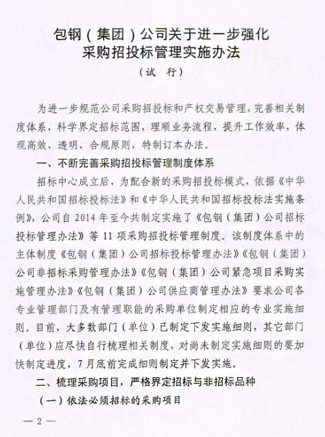 關(guān)于印發(fā)《包鋼(集團)公司關(guān)于進一步強化采購招投標管理實施辦法(試行)》的通知